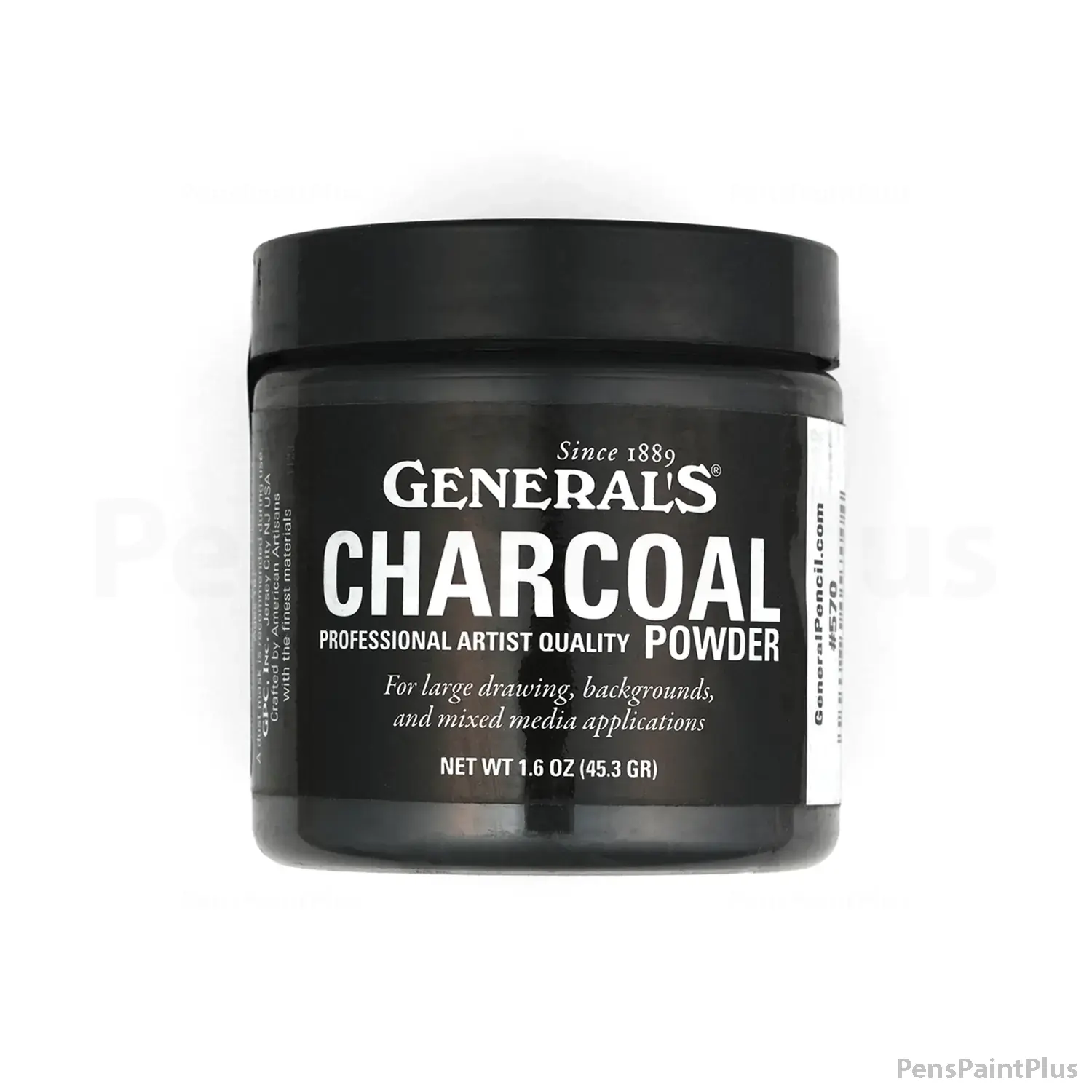 Das Kohlepulver von General’s eignet sich hervorragend für grossflächige Zeichnungen oder experimentelle Techniken. Es lässt sich trocken mit Tuch, Schwamm, Pinsel oder Finger auftragen, kann aber auch mit Wasser oder einem anderen Bindemittel verwendet werden.